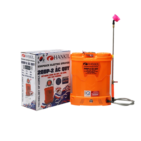 Máy phun thuốc trừ sâu, côn trùng điện HANKIL 20DP- ắc quy Cam Bình ắc quy 12V12Ah